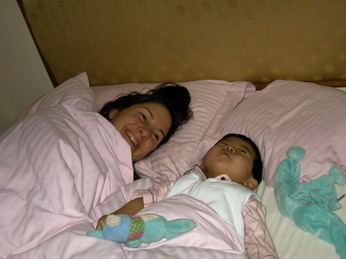 Na de afwikkeling van de formaliteiten zijn we naar het hotel teruggegaan. Lekker het pyamaatje aan voor het middag slaapje.