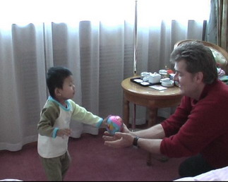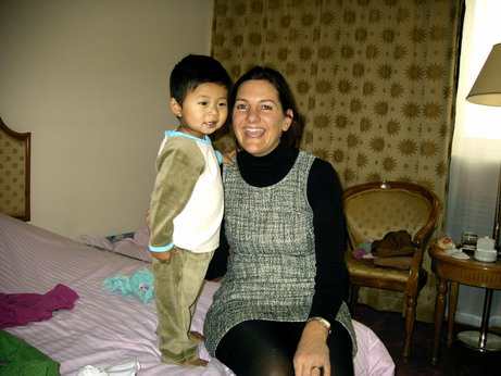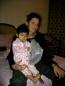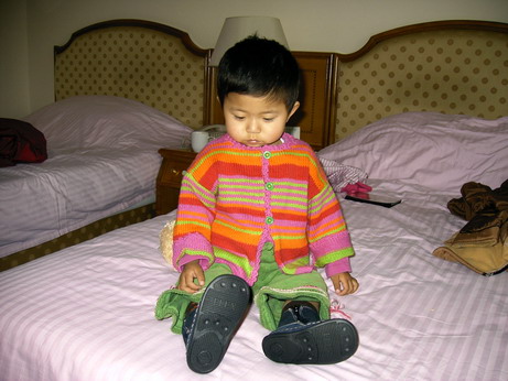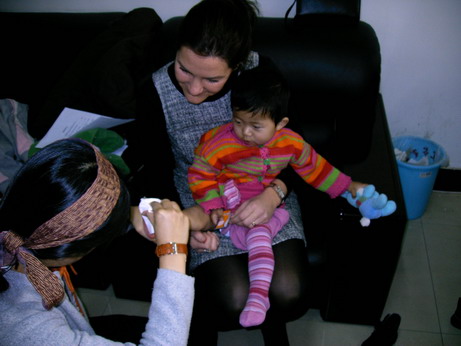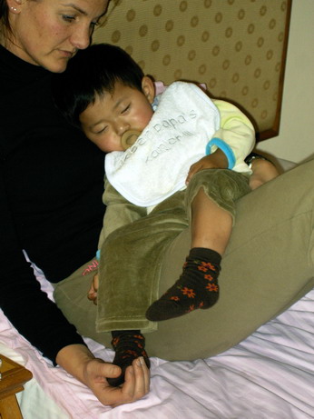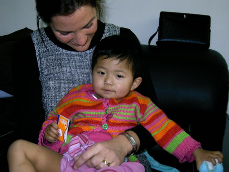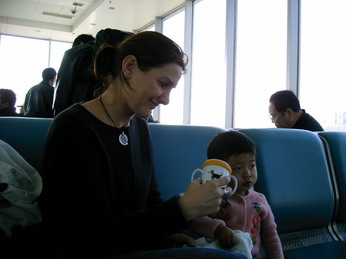 Het was twee uur vliegen naar Beijing, na een uurtje begon Lynn zich een beetje te vervelen. Door de turbulentie kon ze niet rondlopen en moest ze op schoot blijven. Dit leverde de nodige strijd op.