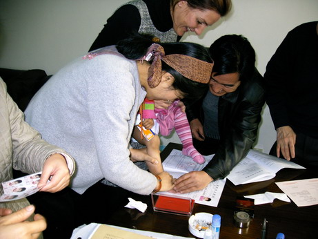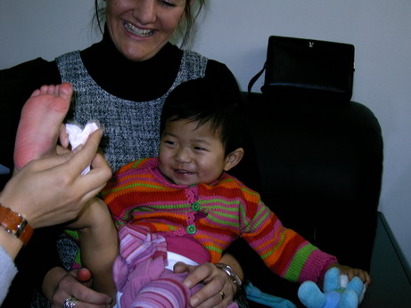 Een van de handelingen welke verricht moesten worden was het afstempelen van het adoptie document met een voetafdruk van Lynn.