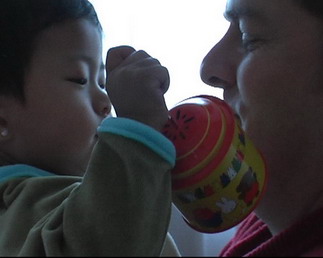 Voor het slapen gaan nog even dvd met chinese kinderliedjes kijken.
